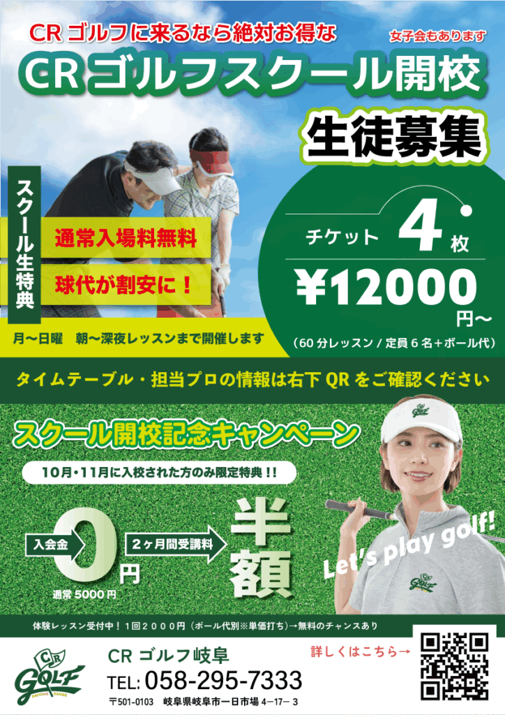 入校案内初心者から上級者の方まで安心して通えるスクールが充実※CRゴルフオフィシャルスクールは10月よりスタートします。 各スクール案内 入校案内初心者から上級者の方まで安心して通えるスクールが充実※CRゴルフオフィシャルスクールは10月よりスタートします。